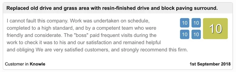 Mrs Garner We are thrilled with our beautiful new resin drive. It is above and beyond expectation . The men were courteous and polite and completed the job quickly. We highly recommend Starmac Surfacing. Mr & Mrs Garner, Dudley.